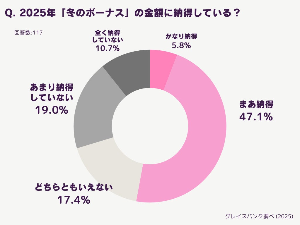 - 冬のボーナスの金額に対して、約半数が「納得」