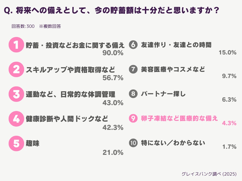 「卵子凍結など、将来の選択肢を残すための医療的な備え」と回答した人も4.3%いました。