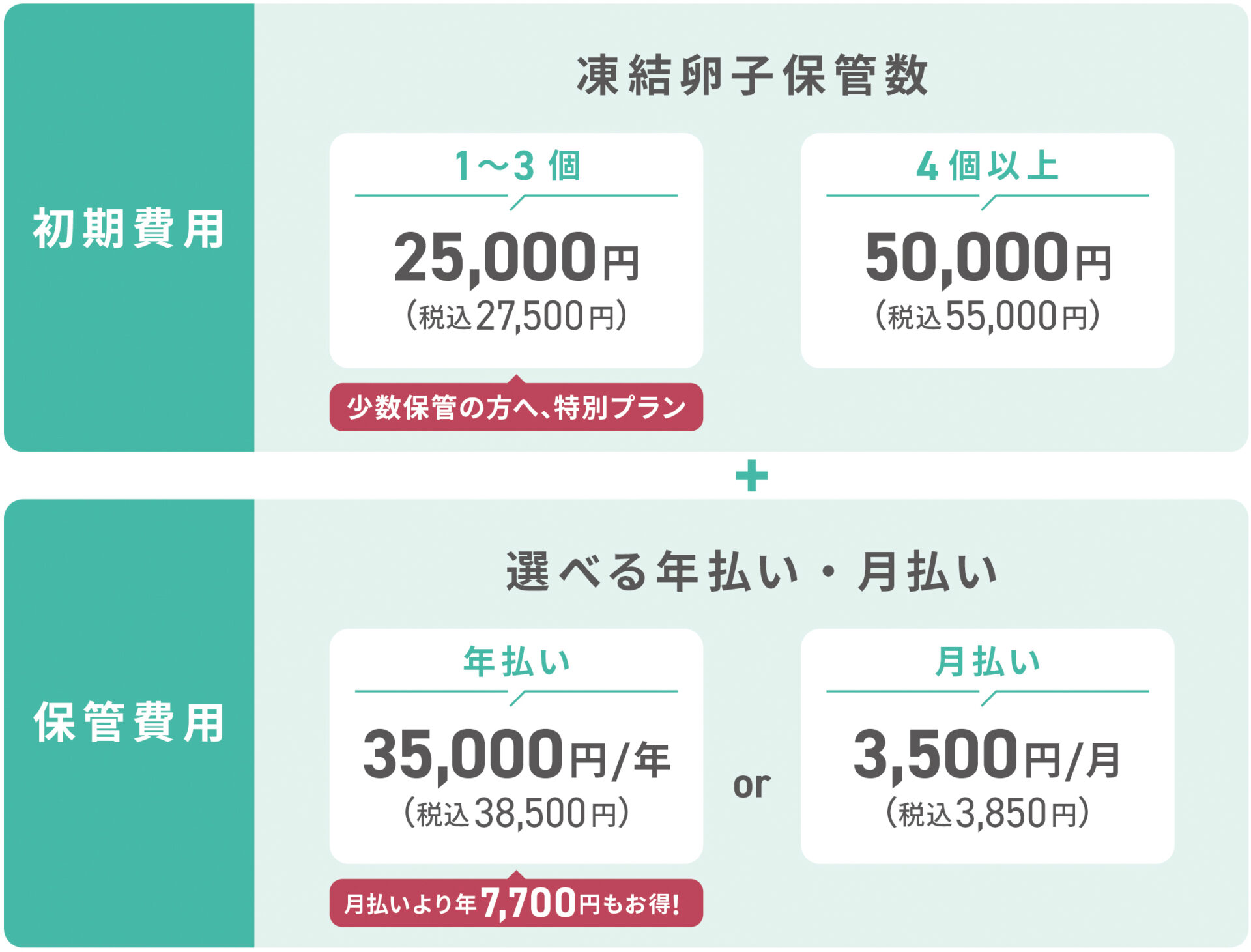 - 初期費用には、凍結卵子の保管庫までの移送料他、契約にかかる諸費用が含まれます。